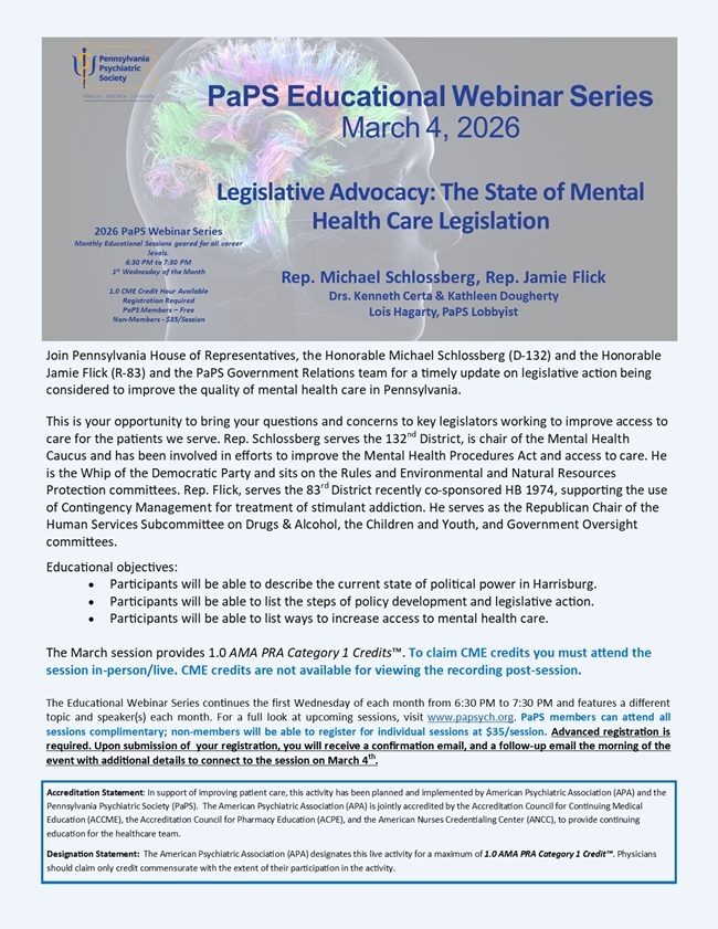 PaPS Members: Please log in here in order to see free member pricing for this event. Reminder that if you are PaPS Member - Please log in here in order to see free member pricing for this event. Please make you registration selections below and click "Register Now!" to submit. If you have any trouble, please email papsych@papsych.org.